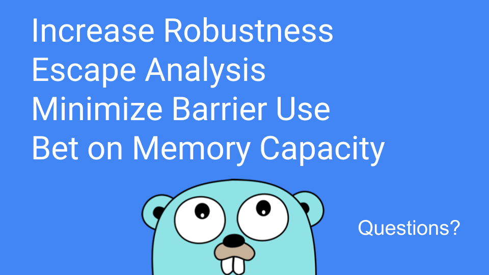 We will also be looking into how to improve our already pretty good escape analysis and optimize for Go’s value-oriented programming. Not only in the programming but in the tools we provide our users.