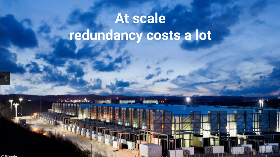 Redundancy wasn’t going to scale, redundancy costs a lot. It costs new server farms.